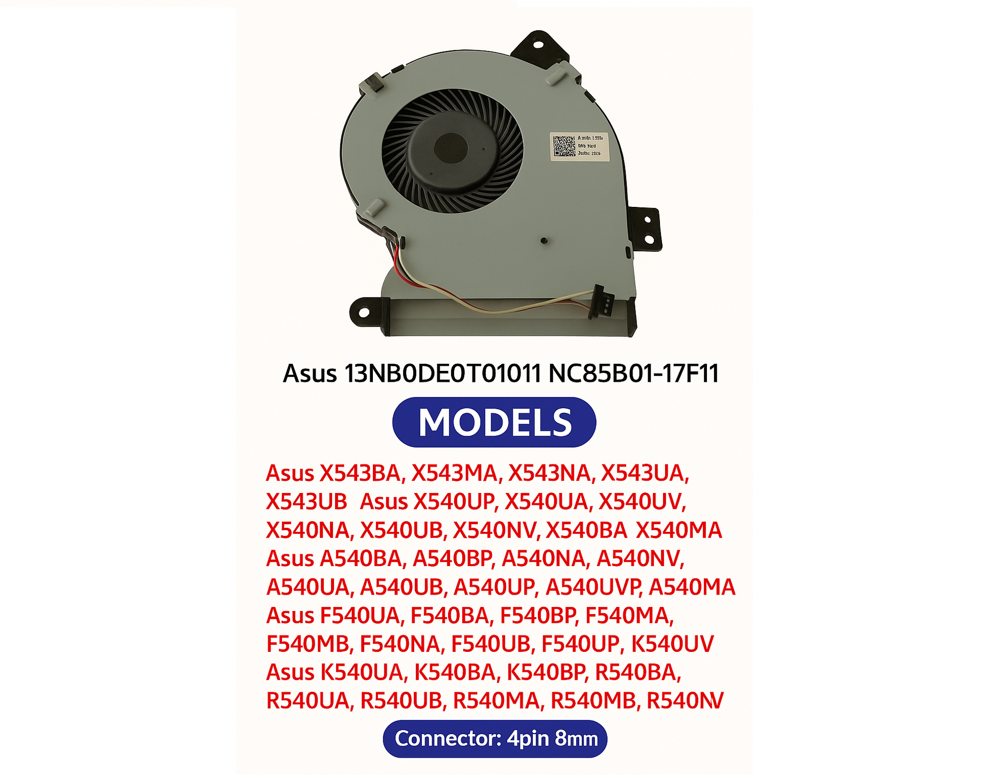 Compatible CPU Cooling Fan for Asus 13NB0DE0T01011 DQ5D589E002 NS85B01-17F11